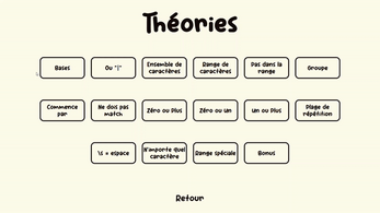 regex. Chaque niveau présente des chaînes de caractères, le joueur doit créer une